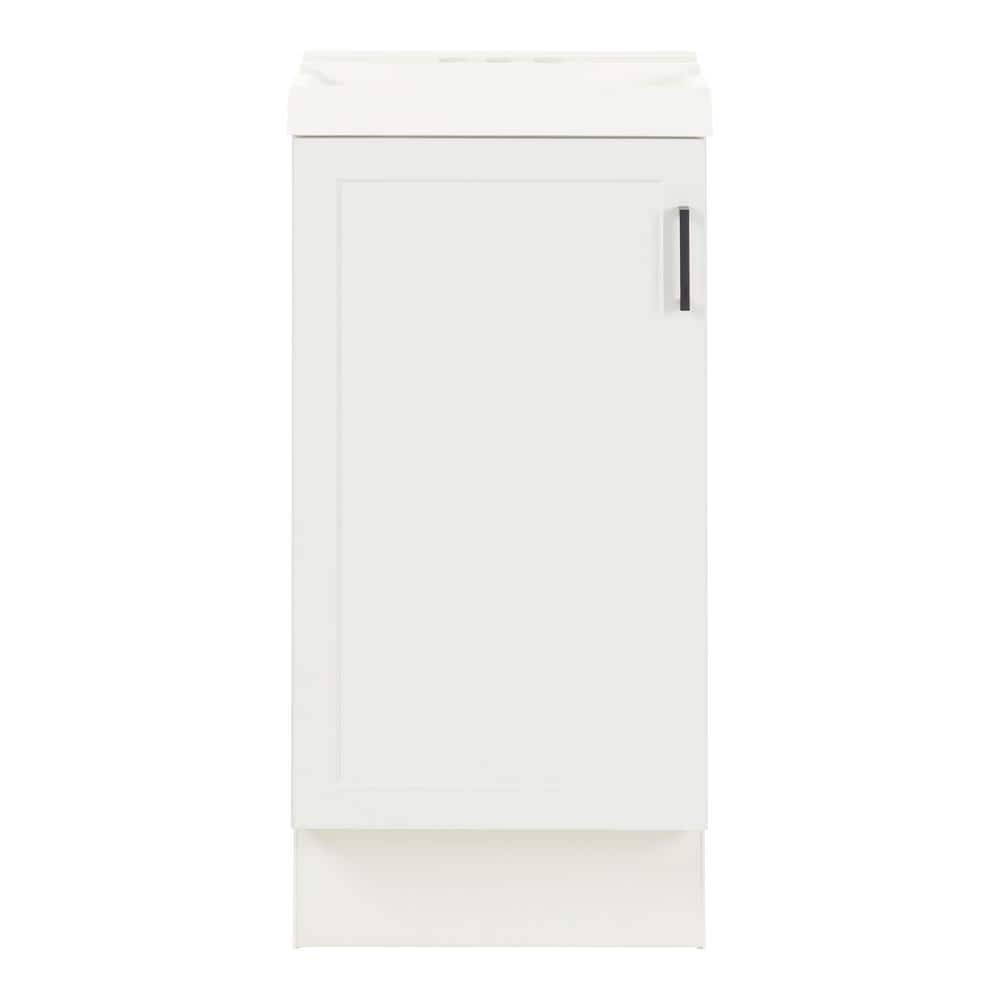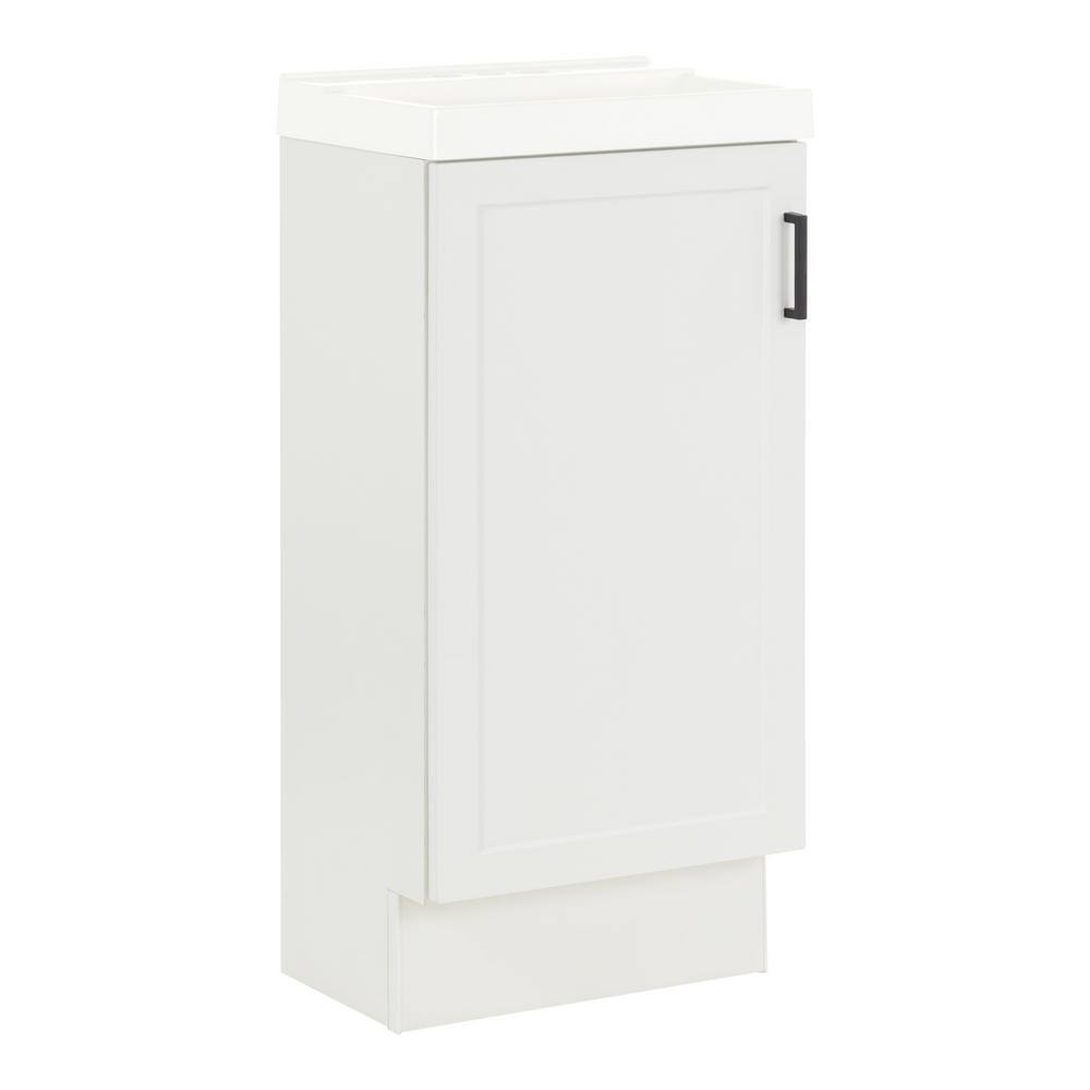 Designed to maximize space in small spaces, the 17 in. W x 12.75 in. D x 36.52 in. H Penlee white bathroom vanity features a narrow design and an adjustable interior shelf. This soft white vanity features a full-overlay slim Shaker-style cabinet door that is accented by a matte black handle.